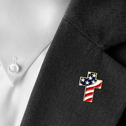 American Flag Christian Cross Lapel Pin – Gift – Hat Pin