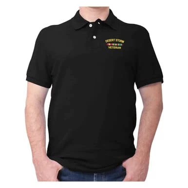 Show your service pride & remembrance wearing your beautifully Desert Storm Veteran Embroidered Polo Shirt with Ribbons. These Polos will keep you cool and looking good all season long. They are handsomely embroidered onto our comfortable 100% cotton Polos. Offered exclusively at VetFriends.