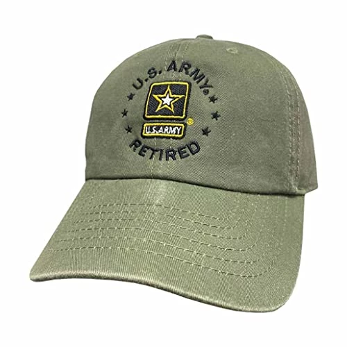 Officially Licensed By U.S. Army Retired Veteran Logo Hat – Olive Drab Military Apparel Patriotic Products Gifts For Veterans Families And Retired