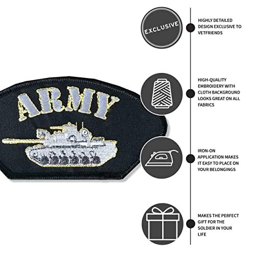 US Army Patch With Army Tank Graphic Licensed Military Apparel Patriotic Products Gifts For Veterans Families And Retired VetFriends.com