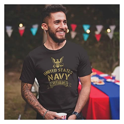 Show your Service Pride wearing this special Officially Licensed by the United States Navy edition shirt. Vintage Graphic with US Navy Eagle Emblem Logo and Bold Text that reads: UNITED STATES NAVY VETERAN. These shirts will keep you cool and comfortable with heat pressed technology in the USA -Fabric Imported. 100% Cotton for extra comfort. A new patriotic favorite!. Officially Licensed by the United States Navy & exclusively offered at VetFriends.
