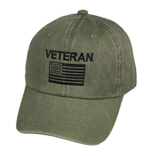 US Veteran Baseball Cap With Embroidered US Flag (OD/Black)