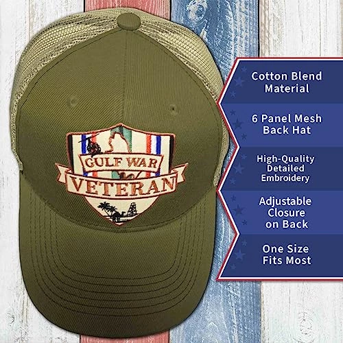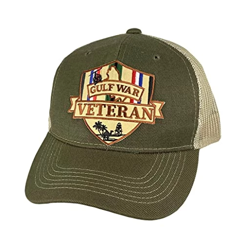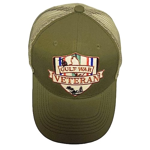 VetFriends.com Gulf War Veteran Hat Olive Drab Military Hat With Persian Gulf War Graphics Mesh Back Cap