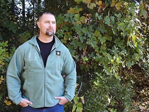 VetFriends.com US Army Star Logo Embroidered Fleece Jacket Sage Green Full Zipper