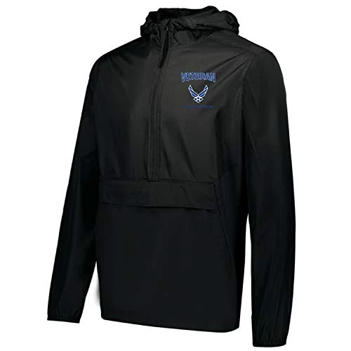 VetFriends.com USAF Veteran Packable Pullover Jacket – Embroidered, Water Resistant, Black, Unisex