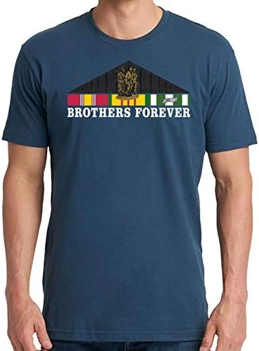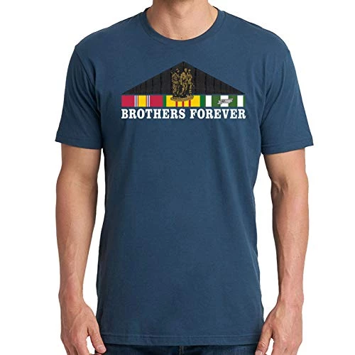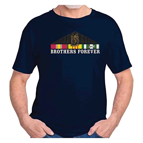 VetFriends.com Vietnam Memorial Brothers Forever Short Sleeve T-Shirt With Service Ribbon And Three Soldiers Statue