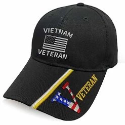 VetFriends.com Vietnam Veteran Hat Embroidered Flag On V Veteran Black Adjustable Fit Hat Military Apparel Veterans