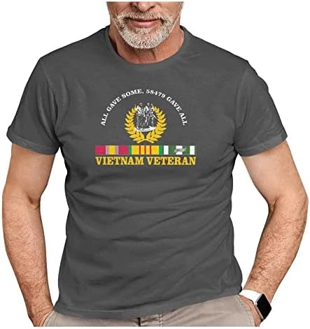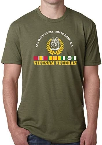 VetFriends.com Vietnam Veteran T Shirt All Gave Some 58,479 Gave All With Three Soldiers Statue & Service Ribbon