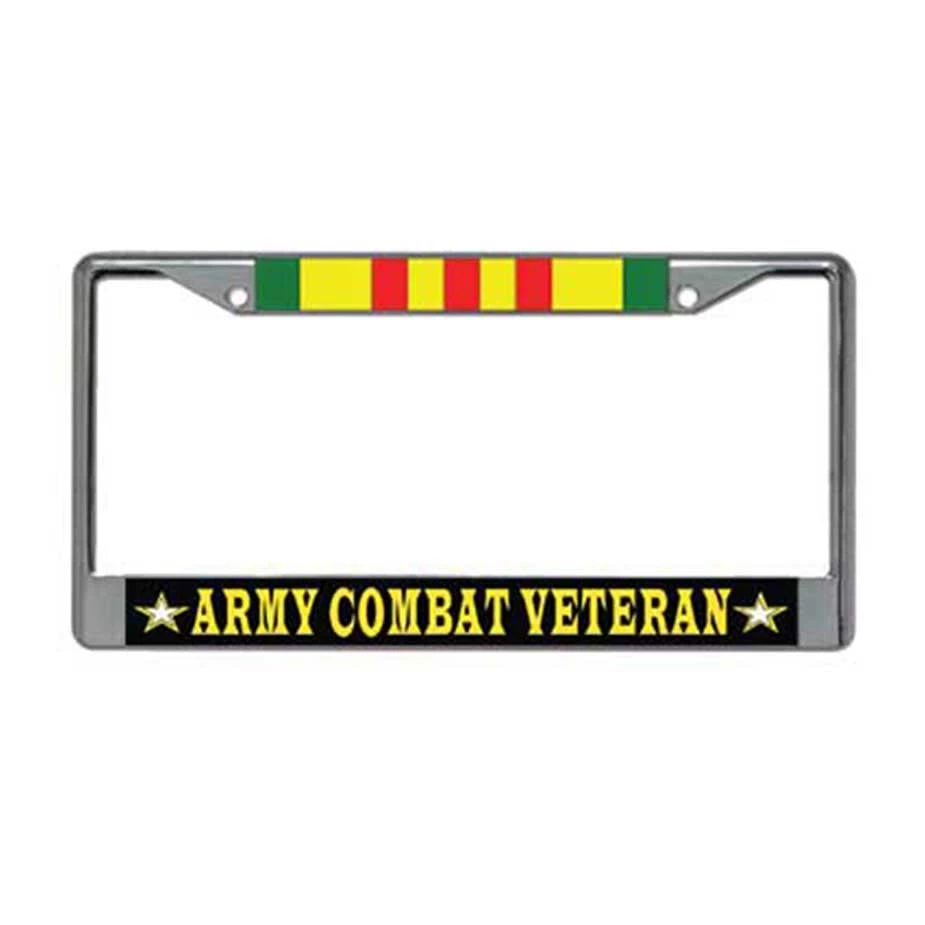 Vietnam War Army Combat Veteran Metal License Plate Frame Licensed Military Apparel Patriotic Products Gifts For Veterans Families And Retired VetFriends.com